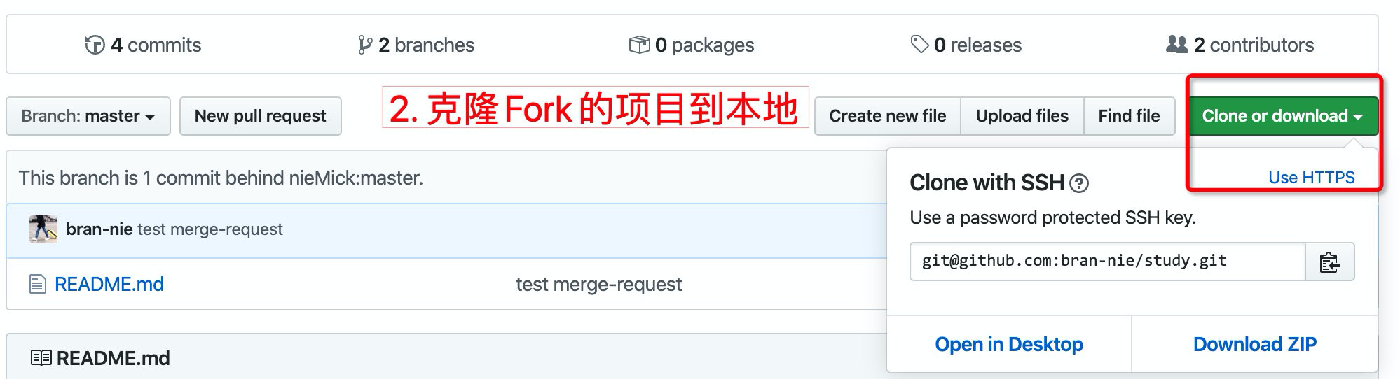4.如果发现本地的代码与 Fork 项目不一致, 也可以 fetch 到本地后, 再 merge.