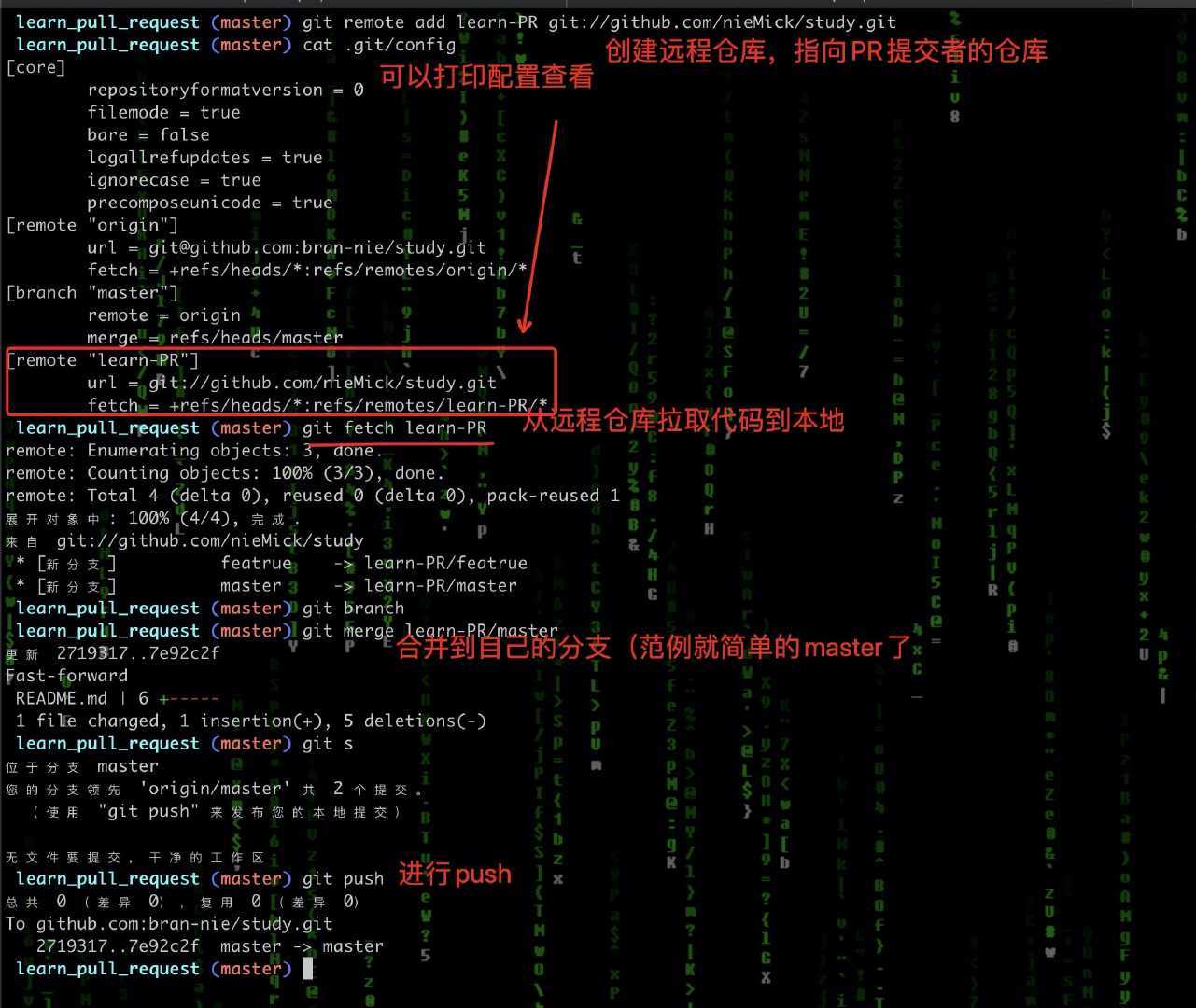 # learn-PR 是自定义的远端仓库名字. 较为流行的命名是 Fork 仓库的名字