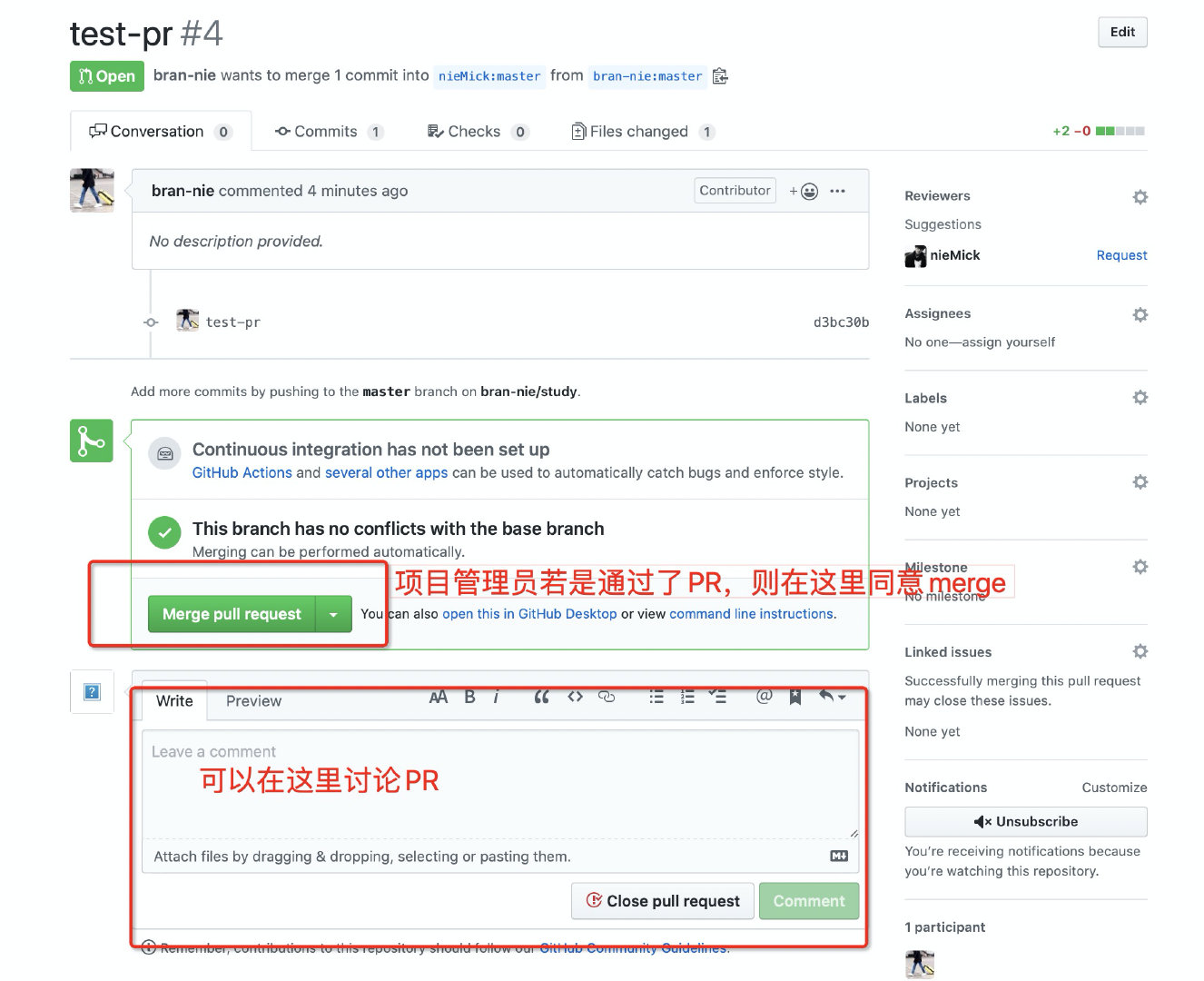 当多人合作时, 就会涉及到代码的提交与合并, 而 PR 方式, 在合并的过程中, 管理员(项目拥有者 or 权限者)可以 review, 讨论, 修改代码, 在审核通过后,可以 Merge 到指定分支.