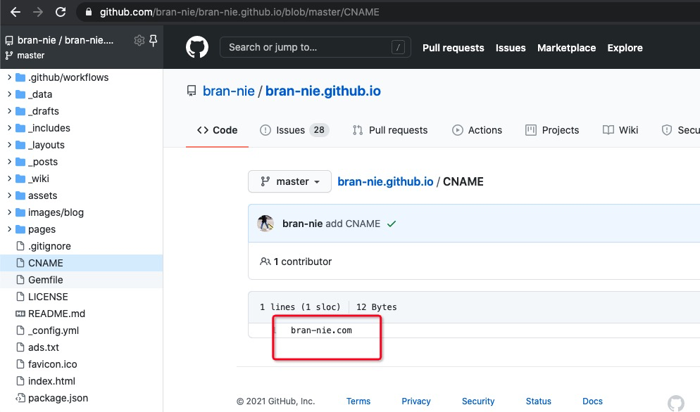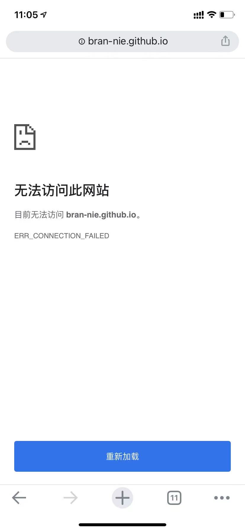 这里我踩了一个坑。修改过自定义域名后,把配置\_config.yml中的 url 属性忘记修改成申请的域名了,因此导致博客网站的链接都还是 bran-nie.github.io/xxx,实际上国内还是访问不到。