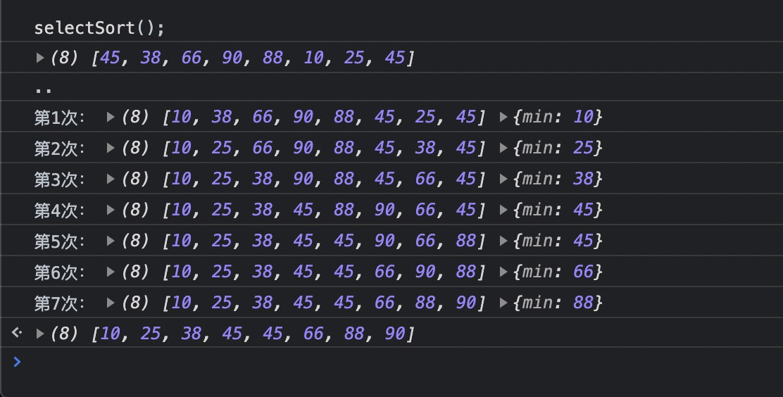 console.log(`第${i + 1}次:`, data, { min: data[i] });